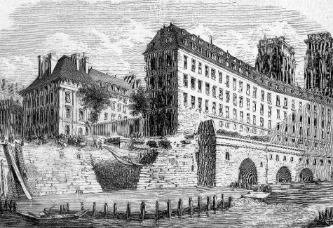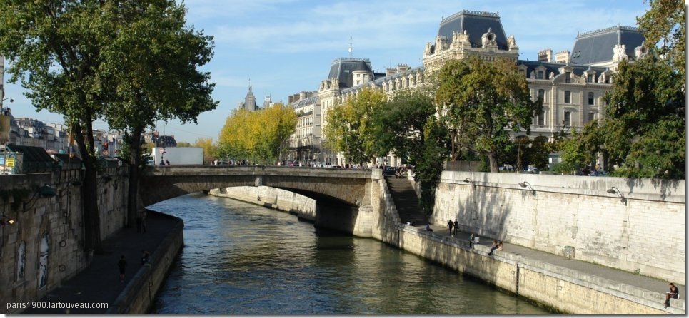 Le Petit Pont - Cardinal Lustiger, d'une longueur de 31 mètres pour une largeur de 20 m, a été construit par l'ingénieur Michal et Darcel en 1852-1853. Le pont qui comporte une arche unique en ciment et pierre meulière, en arc de cercle très surbaissé a été maintes fois reconstruit après avoir été emporté par les crues de la Seine, avec ses maisons, ou ravagé par les flammes. Le pont relie le quai Saint Michel et le quai de Montebello sur la rive gauche au parvis de Notre Dame de Paris, la place Jean Paul II , la préfecture de Police sur l'île de la cité,