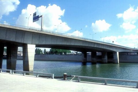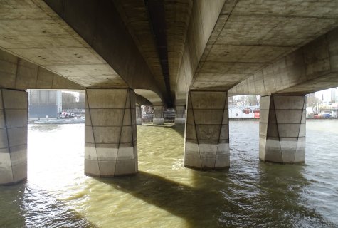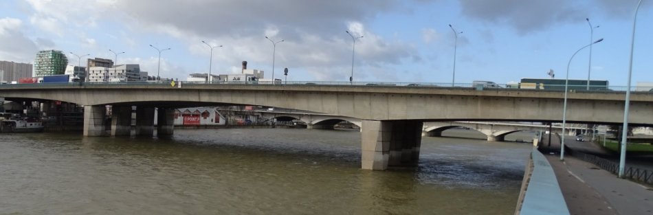 D'une longueur totale de 270 m et d'une largeur de 42 m (le deuxième plus long pont de Paris après son homologue aval) le pont amont a été construit de 1937 à 1969. Conçus par les ingénieurs Depaquit, Rousselin, Dambre et Herzog est constitué de deux ponts biais mécaniquement indépendants en béton précontraint à quatre travées de 58,50m, 90m, 65m et 56,50m de portée. et a été construit par encorbellements successifs avec voussoirs préfabriqués. C'est le premier pont enjambant la Seine au niveau des quais d'Ivry et de Bercy, il est emprunté uniquement par le boulevard périphérique sans circulation pour les piétons. Il est situé en amont du pont National