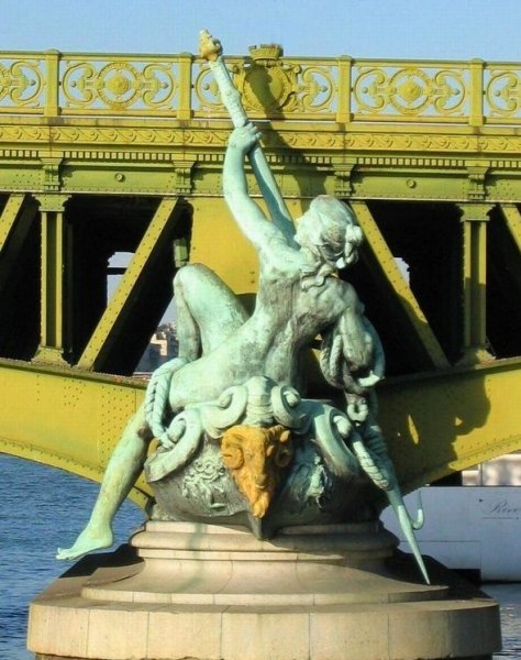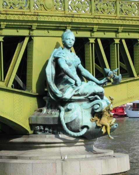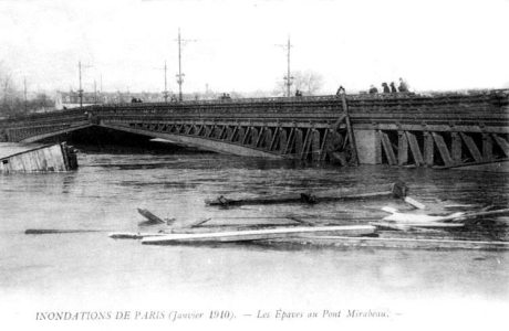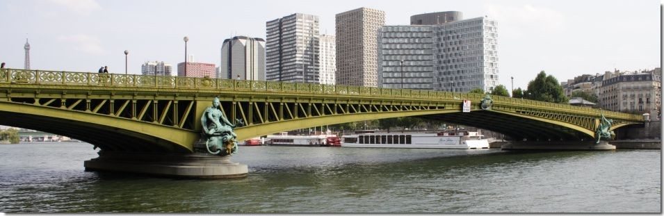 Le pont Mirabeau de 165 m de long et de 20 m de large, a été construit, entre 1893 et 1896, par les ingénieurs Jean Résal (1854-1919), Rabel et Alby qui ont le choix d'un ouvrage métallique à triple articulation. Il comporte trois travées en acier, un centrale de 96 mètres et deux latérales de 34 mètres chacune. Le pont relie le quai André Citroën sur la rive gauche au quai Louis Blériot sur la rive droite