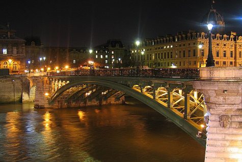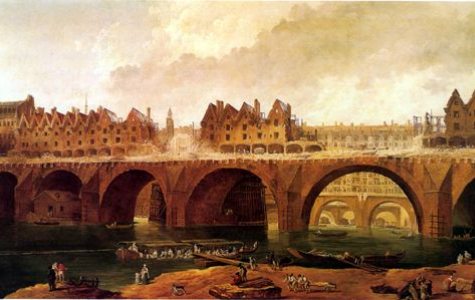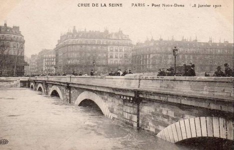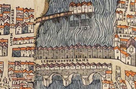 Le pont Notre Dame relie le quai de Gesvres sur la rive droite au quai de la Corse et le marché aux Fleurs sur l'île l'île de la cité. Il comportait initialement cinq arches, mais étant devenu très dangereux pour la navigation. Le premier pont en pierre a été construit inauguré en 1514, par l'architecte dominicain Jean Joconde, le pont supportait soixante-huit maisons identiques en brique et en pierre. Débarrassé de ses maisons vers 1786. Une pompe à eau y a été placé en 1676, servant à alimenter des fontaines dans Paris, elle a été détruite en 1861. Le Pont Notre Dame, sur le grand bras de la Seine, est situé en aval du pont d'Arcole et en amont du pont au Change .
