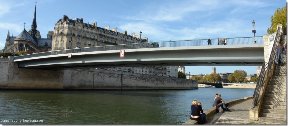 Le pont Saint-Louis, d'une longueur de 67 mètres et d'une largeur de 16 mètres, a été construit en 1970 par les ingénieurs Coste et Long-Depaquit et les ingénieurs Creuzot et Jabouille. Il comporte une travée unique d'une grande sobriété, réservé aux piétons mais peut permettre exceptionnellement le passage des voitures. le pont relie la pointe ouest de l'île Saint-Louis à l'est de l'île de la Cité près du square Jean XXIII et du square de l'île de France .