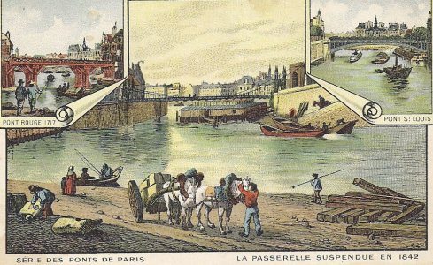 La première passerelle en bois, construite en 1627 est détruite par les crues de la Seine. En 1709 elle est remplacée par un pont en bois, appelé pont Rouge en raison de la peinture qui le recouvrait. En 1861 il est lui-même remplacé par un pont en fonte, à une seule arche. Le pont qui cédera en 1939, suite à des accidents de péniches, laisse sa place à une passerelle provisoire installée en 1941 qui ne sera remplacée qu'en 1970 par le pont actuel.