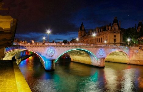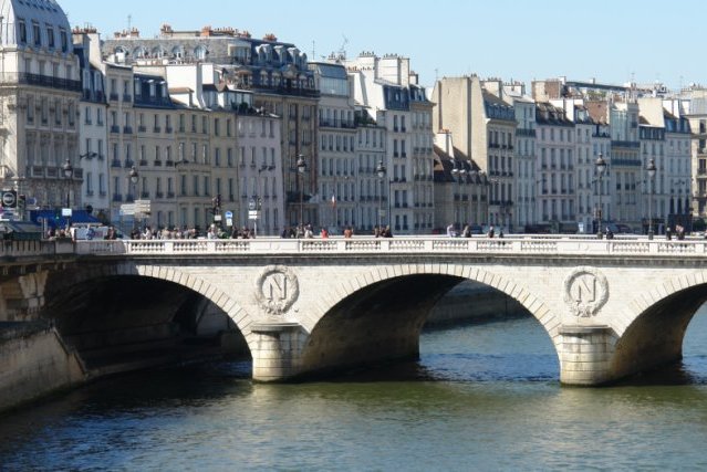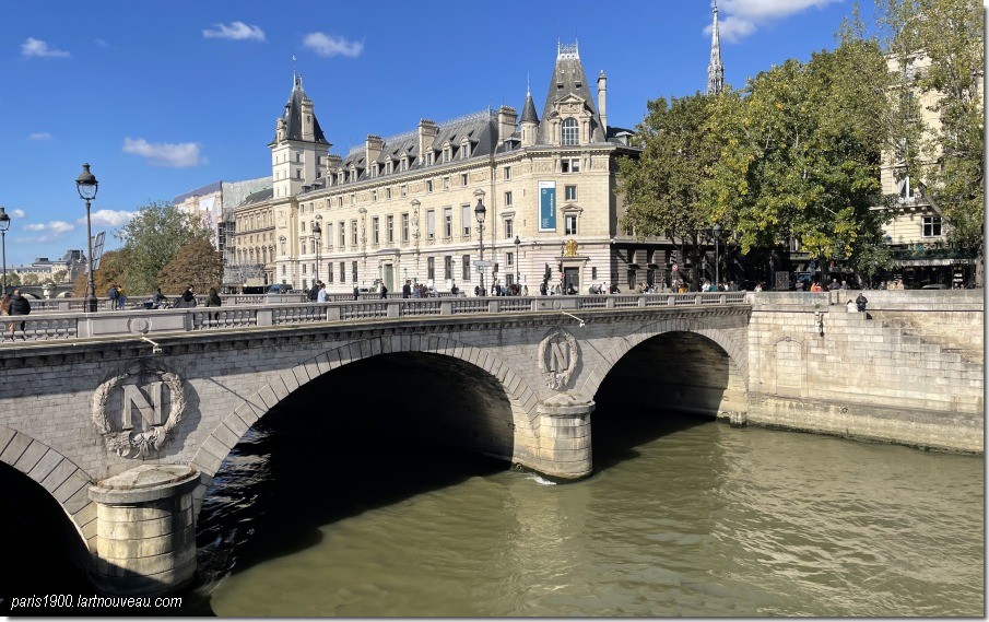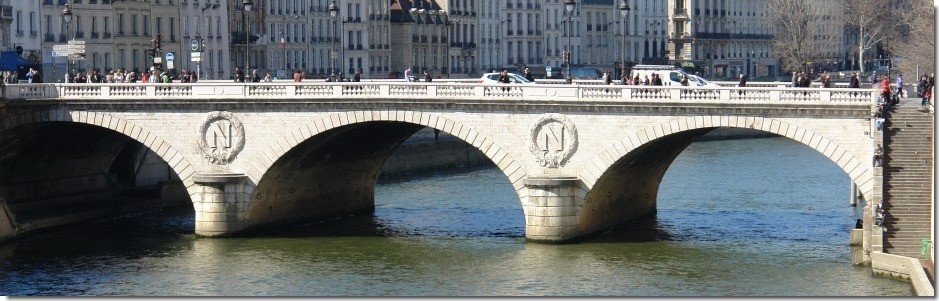 Le pont permet relie la place Saint Michel, le quai des Grands Augustins et le quai Saint Michel sur la rive gauche au quai des Orfèvres et au quai du Marché neuf sur l'île de la Cité. Le "N" impérial de Napoléon III, sculpté par Cabat, est identique à celui du Pont au Change Le premier pont en pierre, surmonté de maisons, a été construit entre 1378 et 1387. Détruit plusieurs fois par les crues de la Seine il est remplacé par un pont en bois ou en pierre au fil des siècles. Les maisons construites de chaque côté du pont disparaissent définitivement qu'en 1808. Le Saint Michel, sur le petit bras de la Seine, est situé en amont du pont Neuf et en aval du Petit Pont - Cardinal Lustiger
