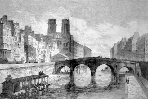 Le pont Saint Michel, d'une longueur actuelle de 62 m et d'une largueur de 30 m, a été construit en 1857 à la demande de Napoléon III par les ingénieurs Vaudrey de La Galisserie. Il comporte trois arches en maçonnerie, en forme anse à panier, de 17m de portée.