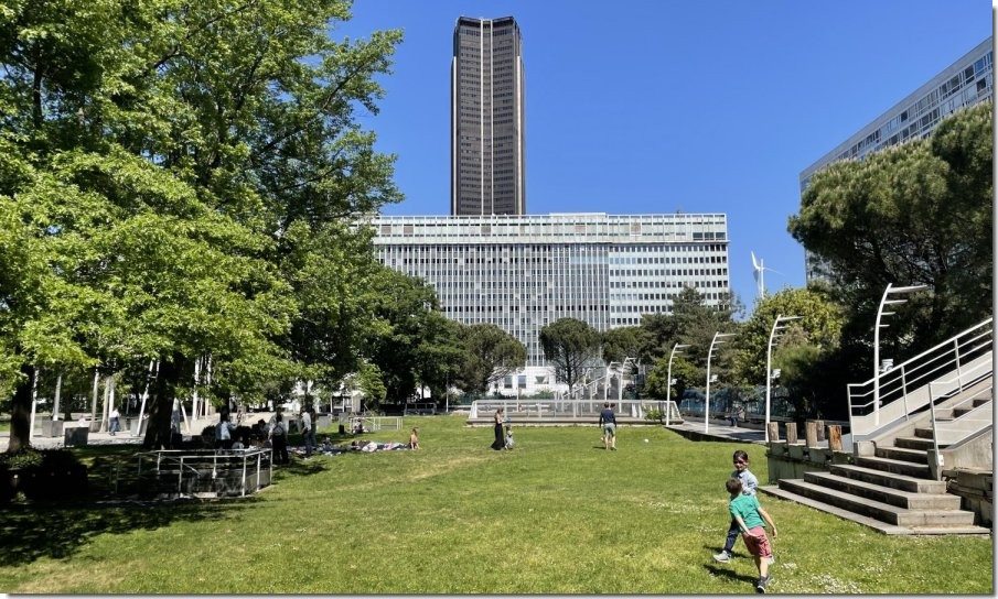 A l'emplacement de l'ancienne gare, on prévoit initialement une gigantesque barre de 150 mètres de haut sur 100 mètres de long. Georges Pompidou rêve alors de faire de Paris un "Manhattan sur Seine", André Malraux, devant le mécontentement général donne son accord pour un autre projet en 1968. Un ensemble de bureaux est construit en 1991 sur la dalle couvrant les voies ferrées et le parking avec comme architecte Jean Willerva, cet ensemble est traversé par le pont des Martyrs du Lycée Buffon où se trouve la gare Montparnasse 3. La gare fut rénovée pour l'arrivée du TGV en 1987 par l'équipe de Jean-Marie Duthilleul, sa façade bénéficiant d'une arche de verre. Le jardin Atlantique est aménagé en 1995 par les paysagistes François Brun et Michel Péna sur la dalle qui couvre les voies SNCF et le parking de la gare