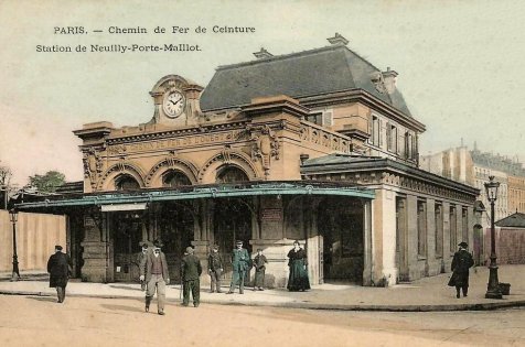 La gare de Neuilly - Porte Maillot, située place de la porte Maillot , construite à cheval sur les voies, a été ouverte en 1854. Elle se situait lors de la mise en service sur la ligne Pont de Cardinet - Auteuil reliée à la gare saint Lazare. Elle est connectée à la Petite-Ceinture en 1867. Le bâtiment voyageurs a été reconstruit pour l'Exposition Universelle de 1900, dans un style prestigieux, par l'architecte Juste Lisch (1828-1910).